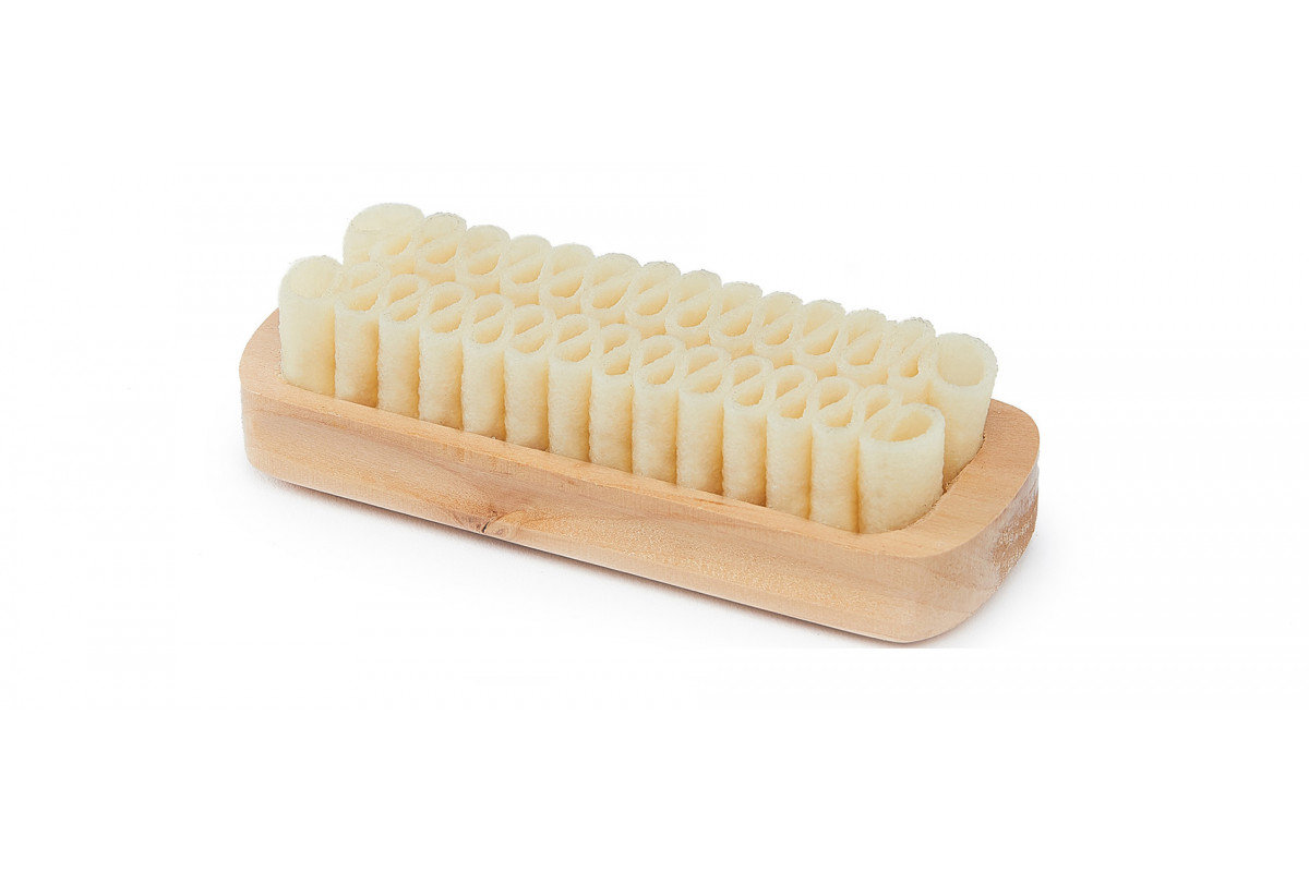 The crepe brush is the essential accessory for the care of your suede shoes. It allows you to clean and delicately remove the dust encrusted in the leather of your favourite shoes, especially before applying a renovator or a waterproofing treatment.