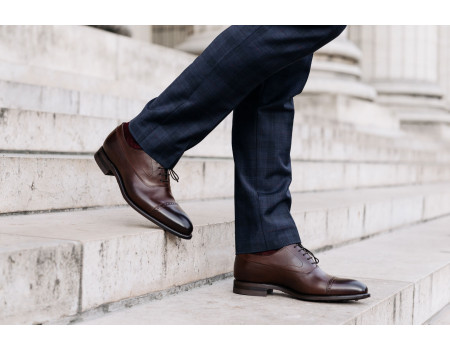 Within the Couture line, Gareth is a leather men's dress shoe that offers a modernised version of the classic Oxford. With its perforated toe cap that adds a touch of originality to its sober and elegant line. The delicate dark shade of brown gives the shoe a distinctive character.