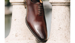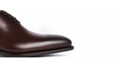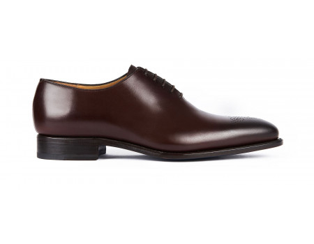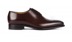 Emling's dark brown leather wholecut Dylan makes a statement about the Oxford being the raciest looking shoe. Goodyear welted, it offers total comfort and durability. The fine perforations of the medallion highlight the exquisite craftsmanship of Emling's master shoemakers.