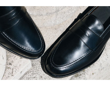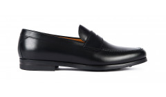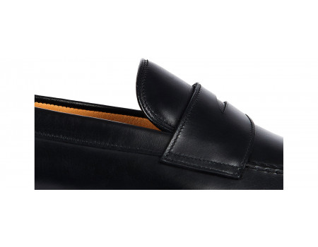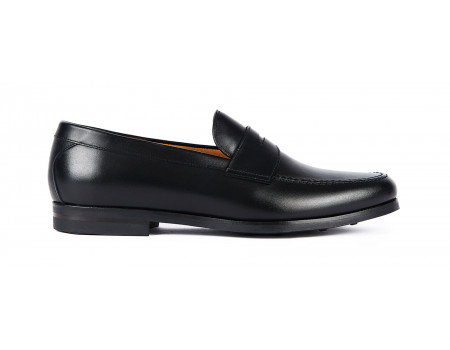 The Simon is a black leather penny loafer moccasin for men. This casual shoe is easy to wear whether with jeans or with more sophisticated outfits. Made from quality leather and with a Blake stitched rubber sole, this shoe offers a very flexible walking comfort.