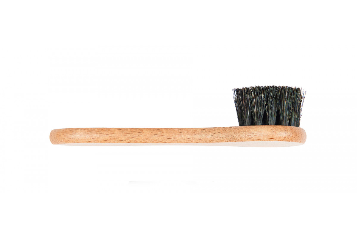 Notre spatule, avec son manche en bois et sa brosse en crins de cheval vous permet d’appliquer une crème ou un cirage de façon uniforme sur vos chaussures jusque dans les moindres recoins de la trépointe. Après utilisation, rincez soigneusement la spatule à l’eau claire.
