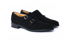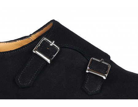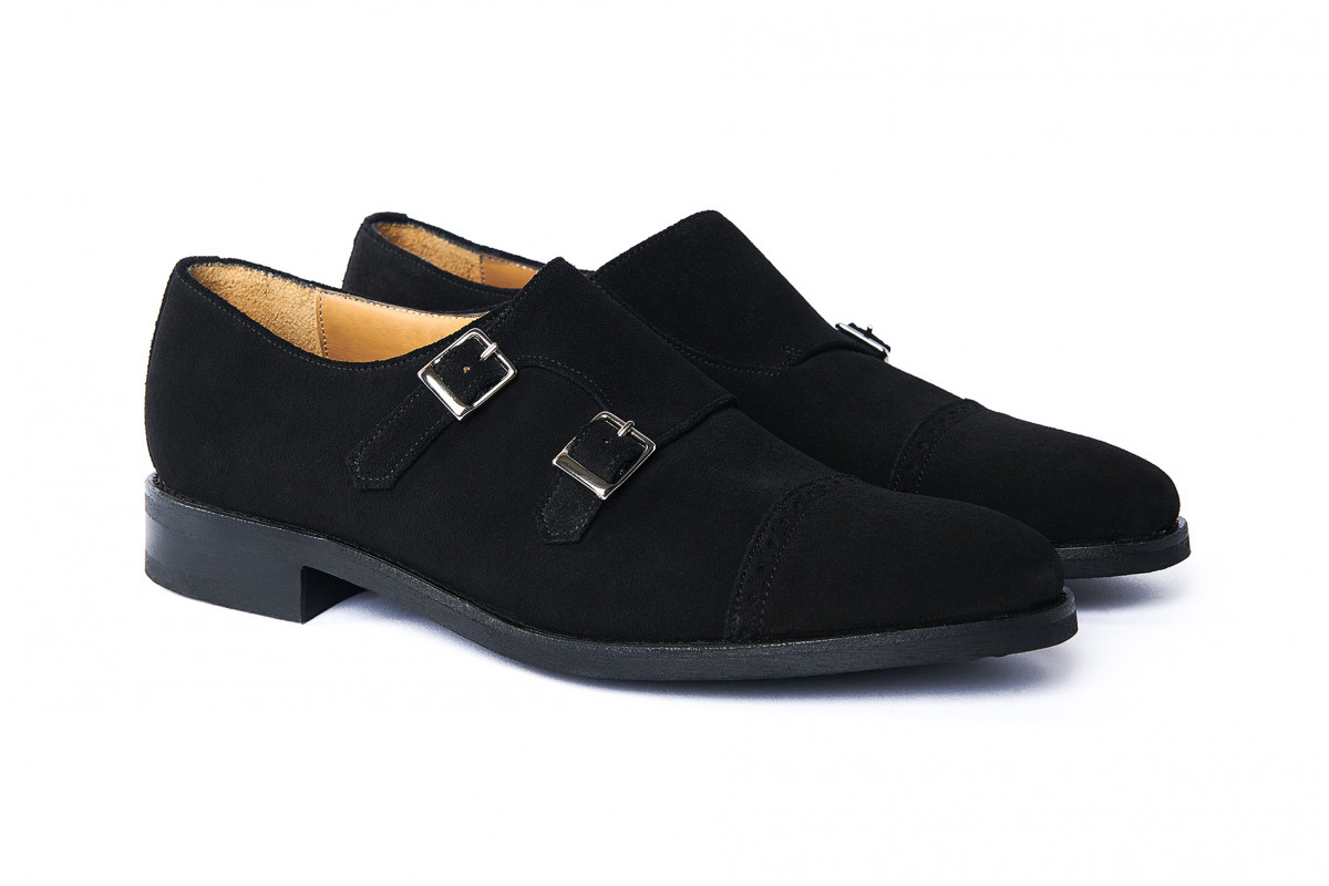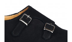 Découvrez le modèle Andrew en veau velours noir, une double boucles caractérisée par son plastron orné de délicates perforations et son bout droit qui lui donne assurément un style très contemporain.