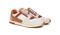 Le modèle Savino en marron foncé propose une interprétation chaleureuse de la sneaker sportive. L’association du cuir lisse et du veau velours enrichit la silhouette d’un contraste subtil, tout en conservant une allure moderne et décontractée.