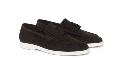 A mi-chemin entre un slipper et un mocassin à pampilles le modèle Ovain complètera vos tenues sport chic. Sa tige qualité en veau velours taupe et sa semelle gomme lui offrent une belle souplesse et en font un incontournable des beaux jours. Non doublée, c’est une chaussure très confortable portée pieds nus.