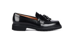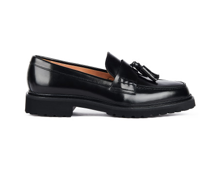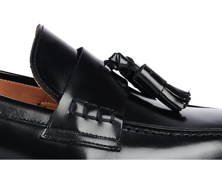 Apportez une touche de modernité et d'élégance à votre garde-robe avec le mocassin EMILIO ultra tendance. Sa finition en cuir glacé noir, combinée à un strap élégant et une pampille délicate, confère à ce modèle un look à la fois raffiné et contemporain.