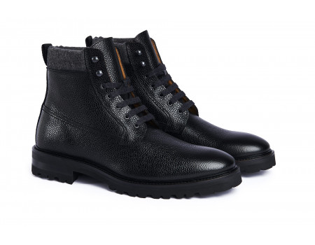 Grâce à la bottine Dremmen soyez tendance et confortable dans vos chaussures pour affronter le froid. Avec leur style, cette bottine vous donnera un look décontracté peu importe votre tenue et habilleront vos pieds jusqu’en haut de la cheville. Sa peausserie grené noir de qualité associée à une semelle microcellulaire feront de cette bottine pour homme un modèle très confortable tout en légèreté à porter.
